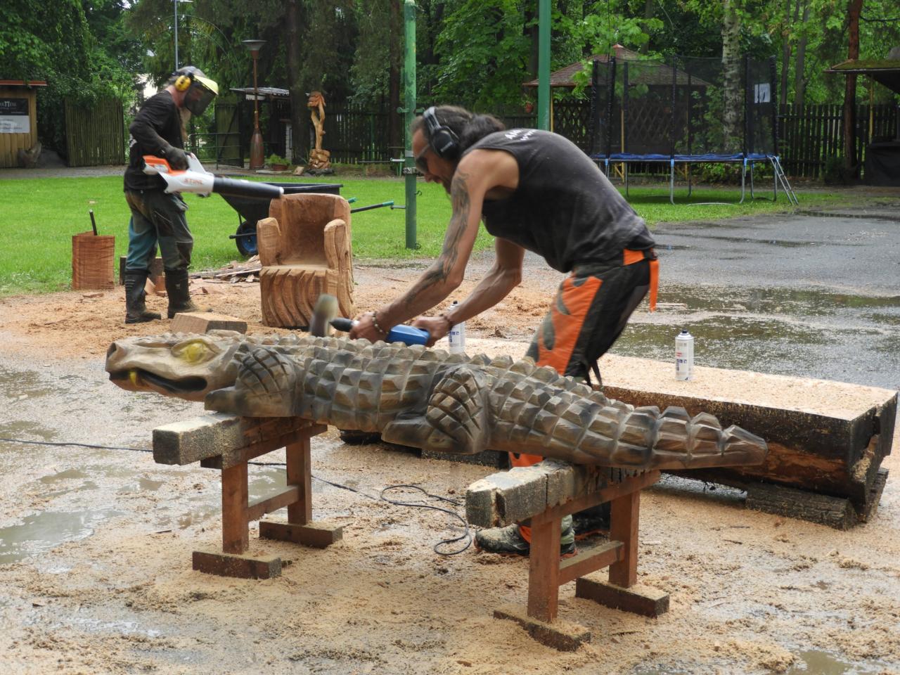 Místní hasiči uspořádali v areálu lesíku další Řezbářskou show, tentokrát byl motorovou pilou vyřezán zvířecí motiv, kterým bude doplněno dětské hřiště v areálu. Poté následovalo kácení majky. K tanci i poslechu hrála živá hudba.